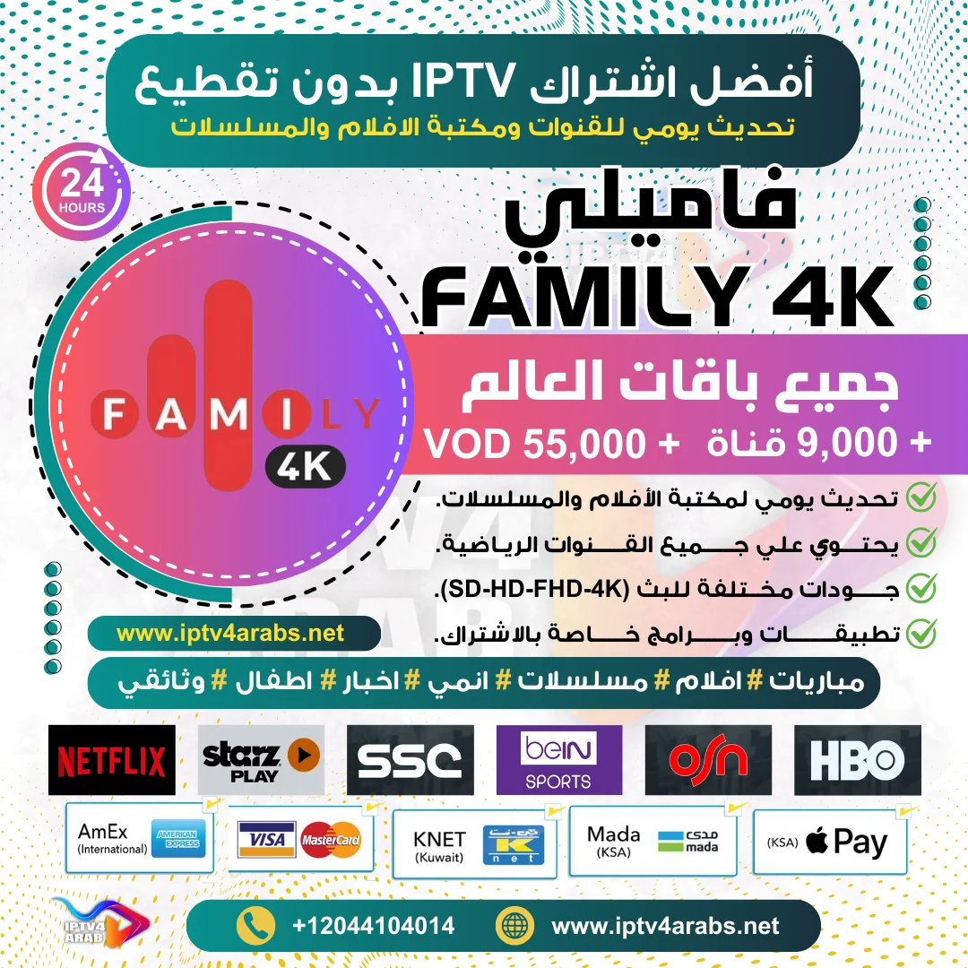 اشتراك IPTV الرسمي سيرفر فاميلي Family 4k
