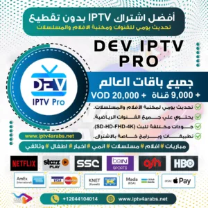 اشتراك DEV IPTV PRO هو أحد أفضل تطبيقات IPTV، حيث يحتوي على أكثر من 8,000 قناة و20,000 فيلم ومسلسل. يمكنك الآن الحصول على كود تفعيل التطبيق وتحميل أحدث إصدار مباشرة من متجر IPTV فور عرب.