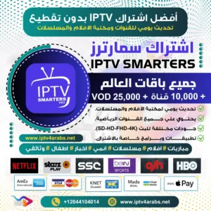 اشتراك سمارترز IPTV Smarters هو أحد أفضل تطبيقات IPTV، حيث يحتوي على أكثر من 10,000 قناة و25,000 فيلم ومسلسل. احصل على كود تفعيل التطبيق وتحميل أحدث إصدار مباشرة من متجر IPTV فور عرب.