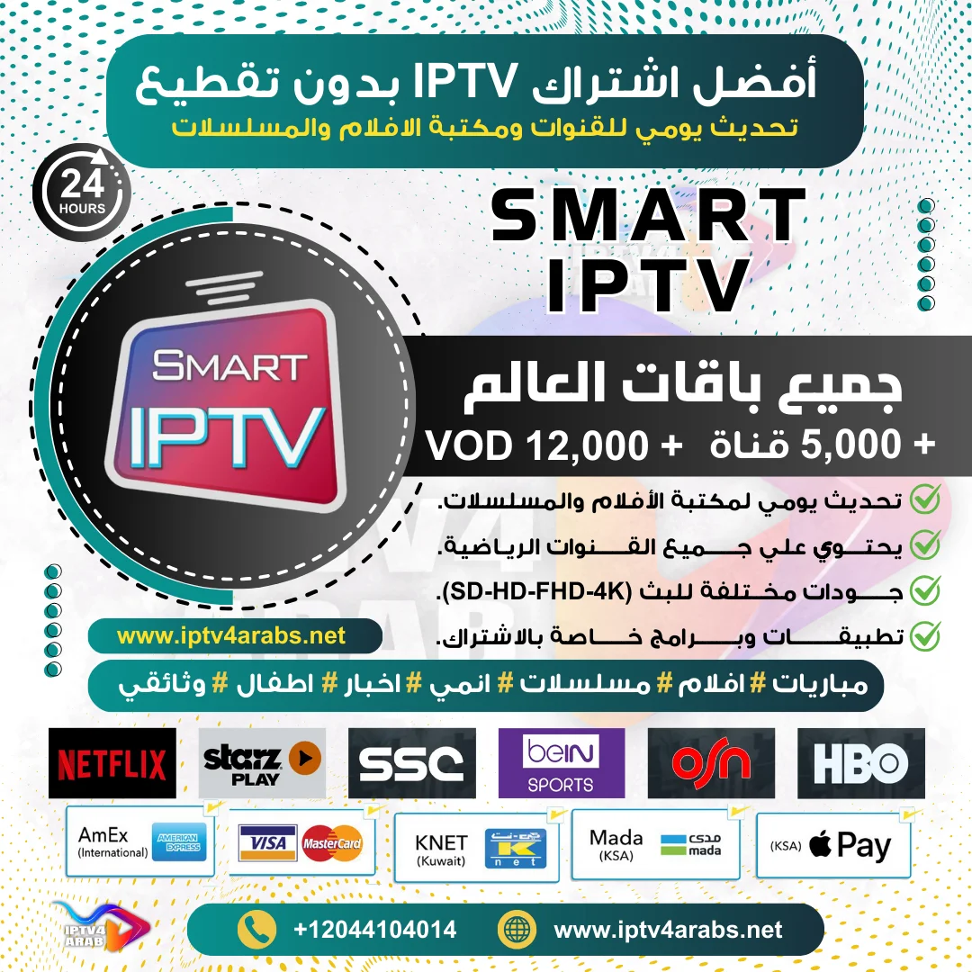 احصل على اشتراك IPTV تجريبي لـ تطبيق Smart IPTV لمدة 24 ساعة لتجربة جودة الخدمة واستكشاف المحتوى. يتيح لك هذا الاشتراك التحقق من قوة التطبيق وتنوع القنوات ومكتبة الافلام والمسلسلات. كما يمكنك التواصل معنا عبر الواتساب للحصول على تجربة مجانية لمدة 5 ساعات. اختر متجر IPTV فور عرب لتستمتع بأفضل اشتراكات IPTV وأقوى التطبيقات، وأسعار تنافسية، وعروض مميزة تلبي احتياجاتك.