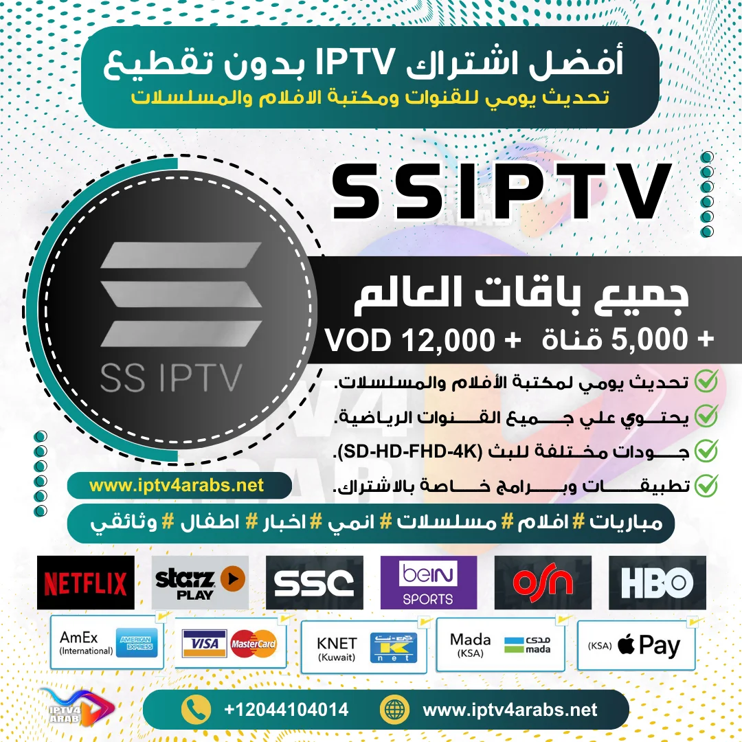 تطبيق SSIPTV هو أفضل مشغل IPTV متاح على أجهزة أندرويد وiOS، حيث يوفر لك العديد من المميزات لتشغيل اشتراكات IPTV بشكل سلس. يمكنك تحميل أحدث إصدار من التطبيق وكذلك الحصول على كود التفعيل مباشرة من هذه الصفحة. كما يمكنك استخدام كوبون الخصم (IPTV20) للحصول على خصم 20% على اشتراكك من متجر IPTV فور عرب.