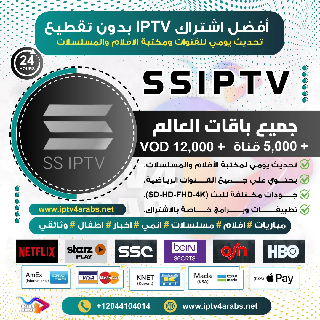 احصل على اشتراك IPTV تجريبي لـ تطبيق SSIPTV لمدة 24 ساعة لتجربة جودة الخدمة واستكشاف المحتوى. يتيح لك هذا الاشتراك التحقق من قوة التطبيق وتنوع القنوات ومكتبة الافلام والمسلسلات. كما يمكنك التواصل معنا عبر الواتساب للحصول على تجربة مجانية لمدة 5 ساعات. اختر متجر IPTV فور عرب لتستمتع بأفضل اشتراكات IPTV وأقوى التطبيقات، وأسعار تنافسية، وعروض مميزة تلبي احتياجاتك.