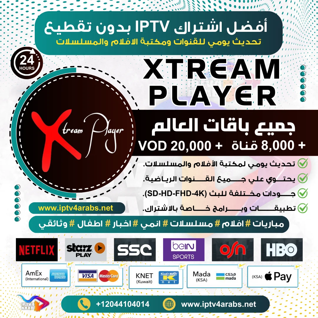 احصل على اشتراك IPTV تجريبي لـ تطبيق Xtream IPTV Player لمدة 24 ساعة لتجربة جودة الخدمة واستكشاف المحتوى. يتيح لك هذا الاشتراك التحقق من قوة التطبيق وتنوع القنوات ومكتبة الافلام والمسلسلات. كما يمكنك التواصل معنا عبر الواتساب للحصول على تجربة مجانية لمدة 5 ساعات. اختر متجر IPTV فور عرب لتستمتع بأفضل اشتراكات IPTV وأقوى التطبيقات، وأسعار تنافسية، وعروض مميزة تلبي احتياجاتك.